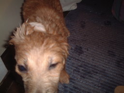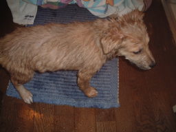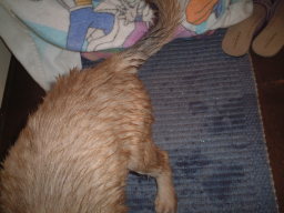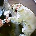 また、始まったワン。 パパの大好きな爪きり。 あたちは嫌いよ! いやなのよね〜。ホントにいやなの。 だって、痛そうなんだもの〜。 あっち向いてよ〜っと。 |
